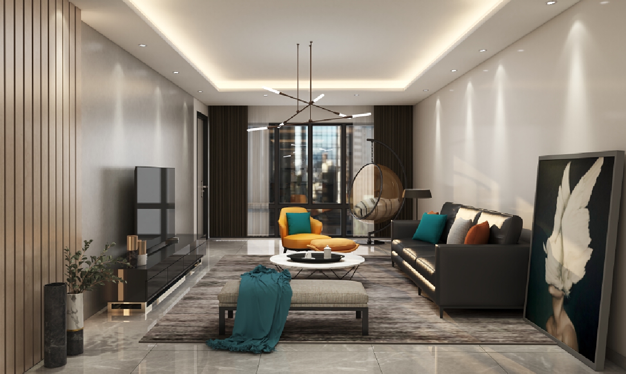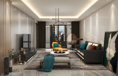 皮質(zhì)的沙發(fā)帶上橘色的沙發(fā)以及暖燈 現(xiàn)代并不是性冷淡色!