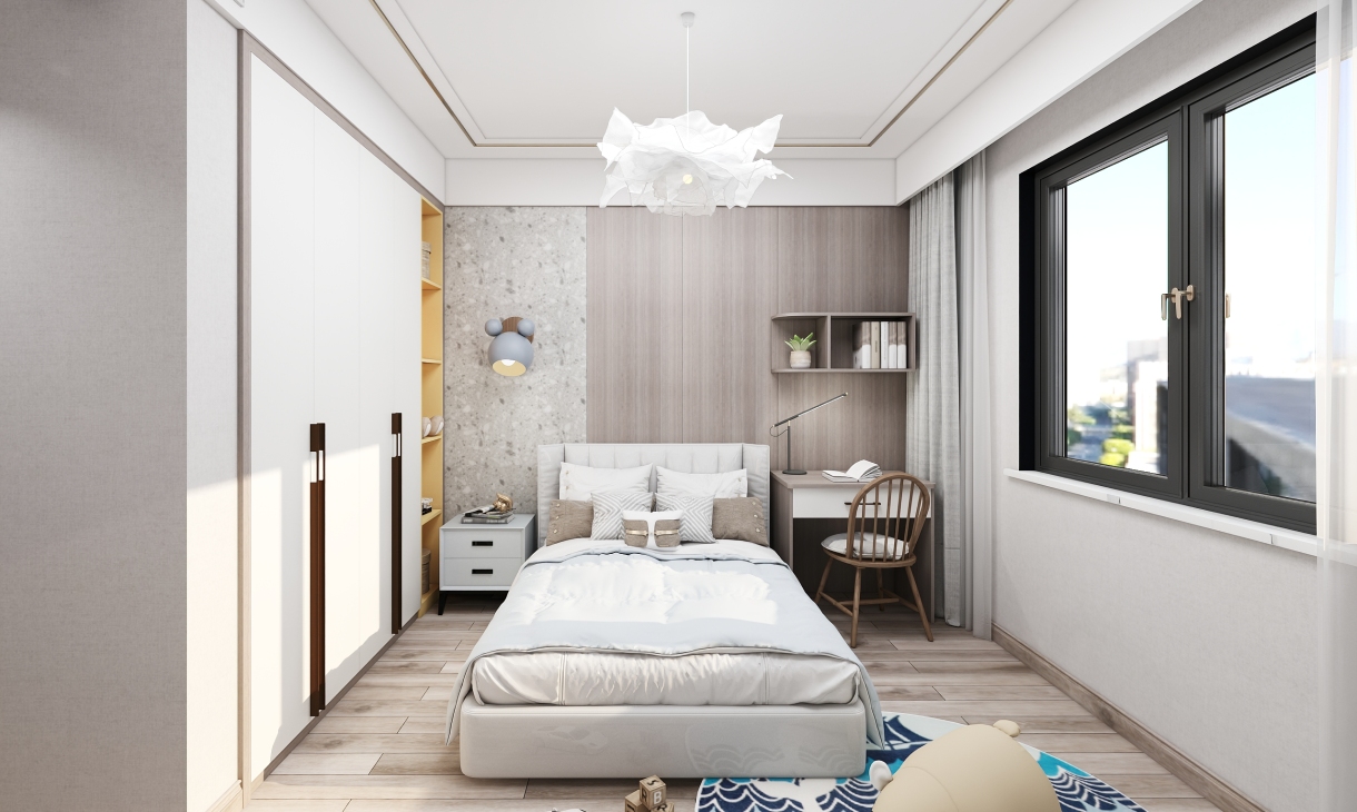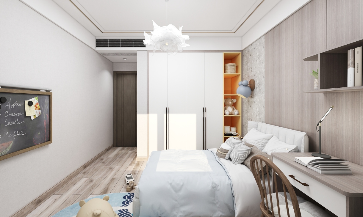 效果圖:全屋概覽效果圖、客廳效果圖、餐廳效果圖、廚房效果圖、兒童房效果圖、主臥效果圖