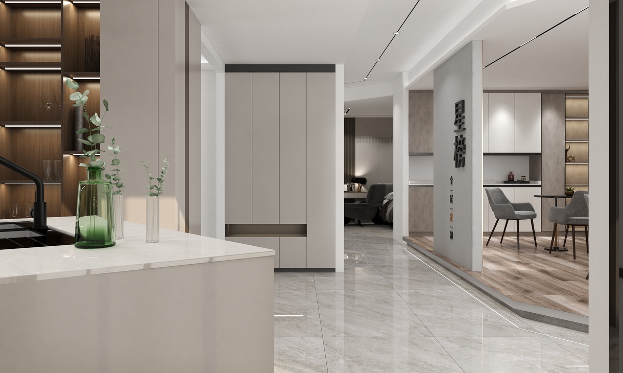 每個空間至少2張效果圖+1張全案全景圖展示,方案描述完整,所有空間需命名。