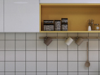 好的烘焙環(huán)境,要滿足的前提一定是安全。水電分離就是最基本的第一步。櫥柜墻壁用瓷磚鋪貼,整改墻面電路,改為內(nèi)嵌式插座,插座高度調(diào)整到120cm高度。設(shè)計(jì)整體櫥柜升級(jí),整理收納工具,不改動(dòng)原有水龍頭和排水的位置,而把電器區(qū)域設(shè)置在最右邊。