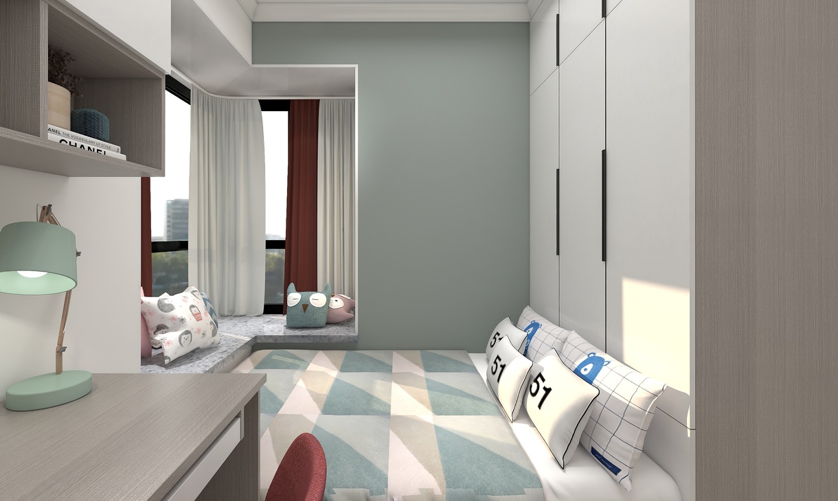 效果圖:全屋概覽效果圖、客廳效果圖、餐廳效果圖、廚房效果圖、兒童房效果圖、主臥效果圖