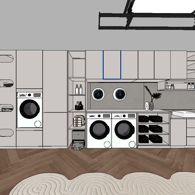陽(yáng)臺(tái)一體柜整體設(shè)計(jì),包含洗漱柜 洗衣機(jī)柜 收納柜 高低臺(tái)面