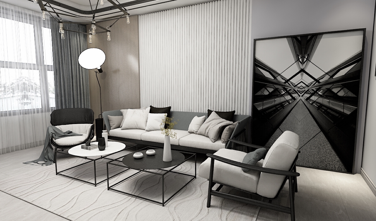 每個空間至少2張效果圖+1張全案全景圖展示,方案描述完整,所有空間需命名。