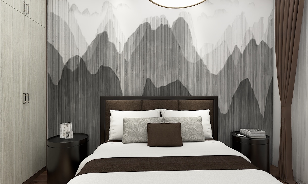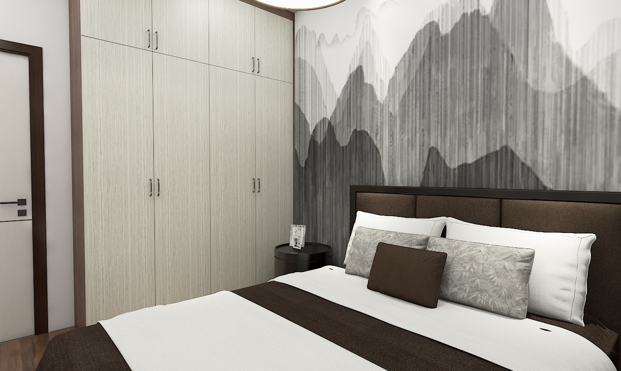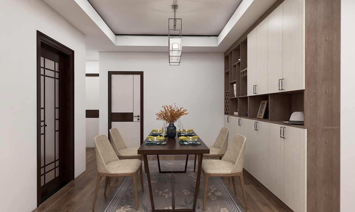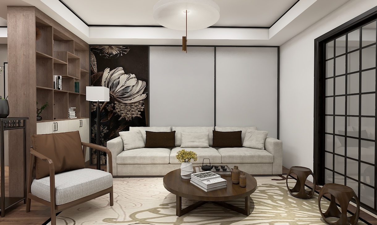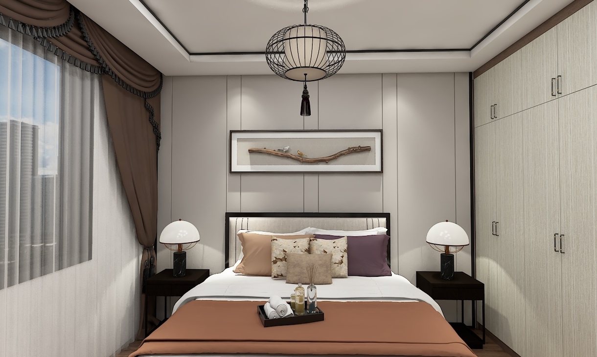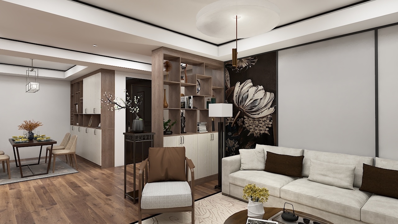 運(yùn)用大量深棕色呈現(xiàn)大氣沉穩(wěn)的感覺 ,在添加一些淺色,讓空間多了一絲明快  ,這也是新中式的精髓所在。