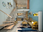 為了體現(xiàn)單人公寓的舒適性,提升視覺(jué)效果和空間利用,本方案采用北歐風(fēng)格來(lái)體現(xiàn)整體調(diào)性,北歐風(fēng)格給人一種輕松活躍,適當(dāng)放松的感覺(jué),而且北歐風(fēng)格適合絕大多數(shù)人。 而在整體布局上,采用了開(kāi)放式廚房來(lái)緩解空間擁擠的現(xiàn)象,餐桌換成了雙人位的吧臺(tái),邊上帶吊柜酒柜,整體集合在偏右邊的位置,充分緩解了過(guò)道小的問(wèn)題,而且吧臺(tái)可以“一吧兩用”就餐品酒兩不誤,吧臺(tái)鏈接矮柜,矮柜用于儲(chǔ)存食用品,在沙發(fā)位置也可以觸手可及的拿到你想要吃的零食,電視柜采用活動(dòng)柜體的形式,方便日后需要移動(dòng)時(shí)不占位置。二樓臥室采用玻璃墻面,拉伸整體寬敞度,為了能夠最大化利用空間,臥室全部采用定制家具,實(shí)現(xiàn)空間利用的同時(shí)不失顏值。