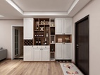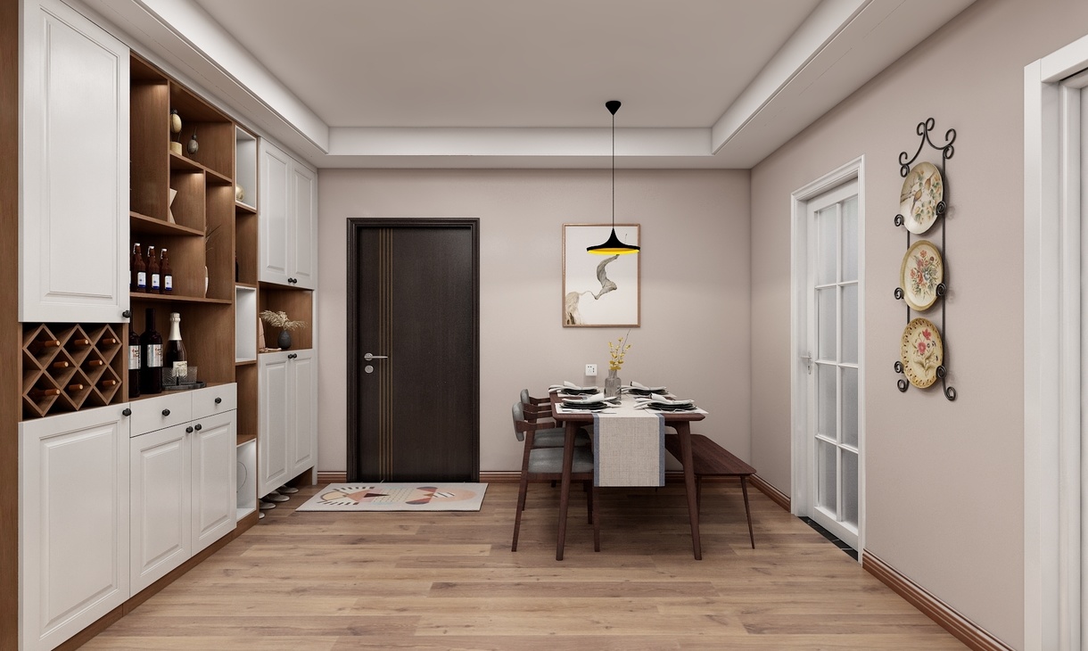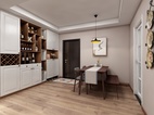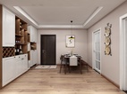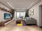客廳空間內(nèi)部的開放式布局,充分考慮到日常生活的功能需要,將有形的物質(zhì)內(nèi)容融入無形的空間當中去,從而營造出一個和諧雅致、悠遠而具有詩意的空間,白色的沙發(fā)、深沉的木紋、帶著禪意閑適的生活氣息。