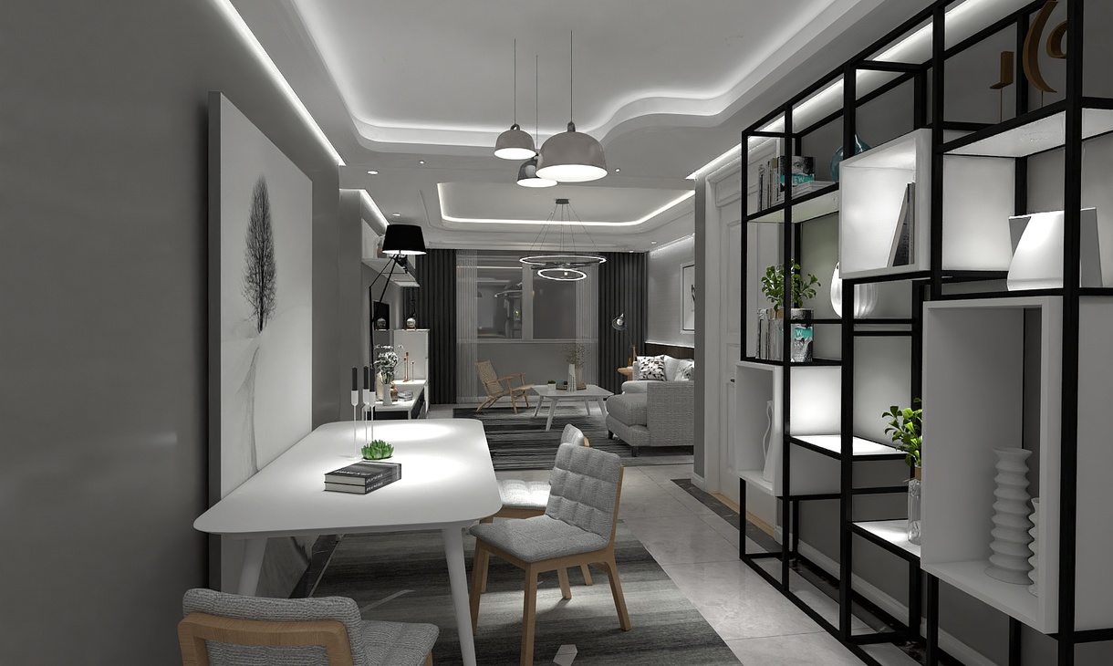 以黑白灰色調(diào)為主 冷色燈光襯托 加以簡單線條搭配