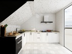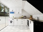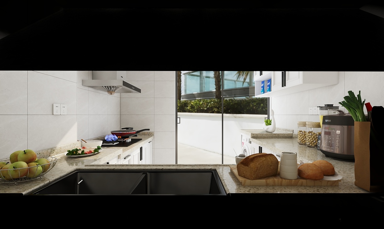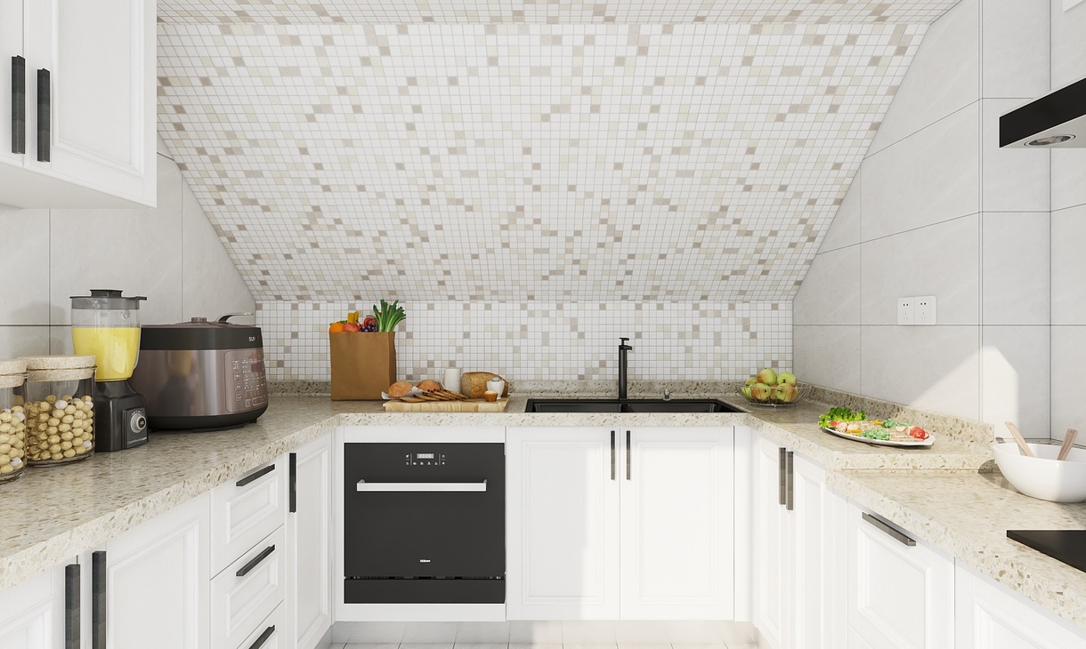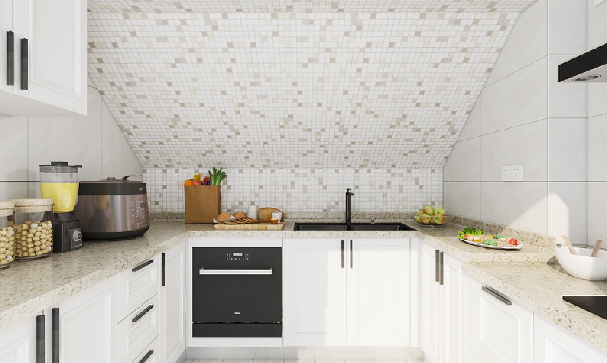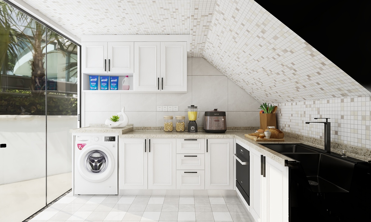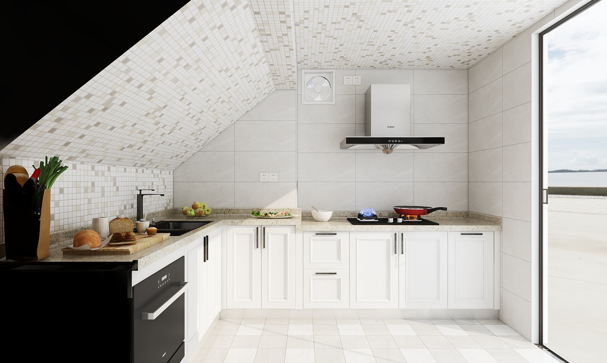 業(yè)主選用不銹鋼地柜石英石臺(tái)面白色吸塑造型門板