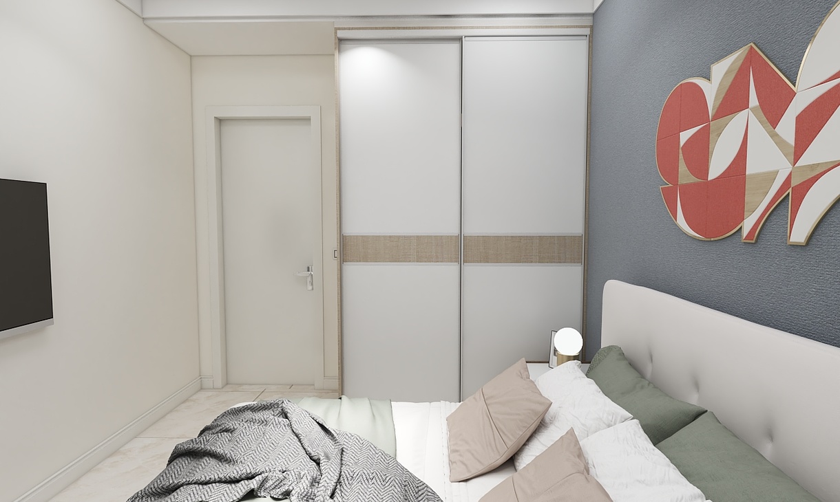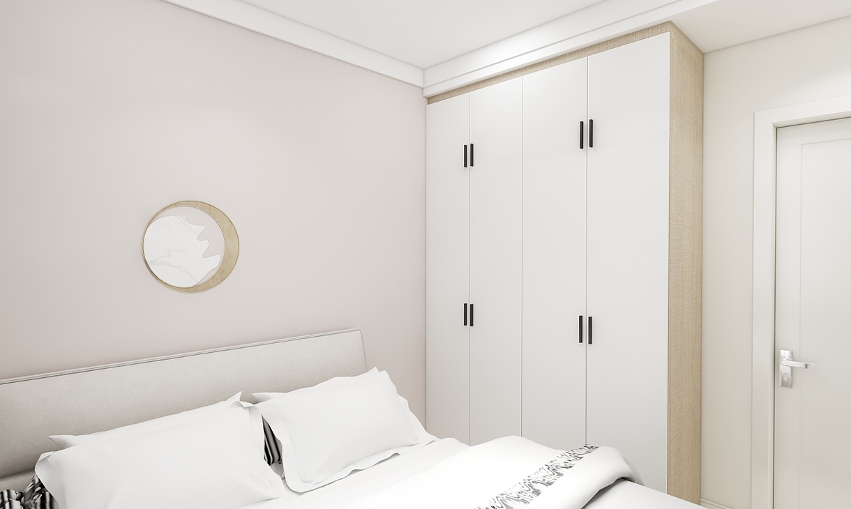 深色墻體做背景,衣柜到棚設(shè)計簡約大氣。