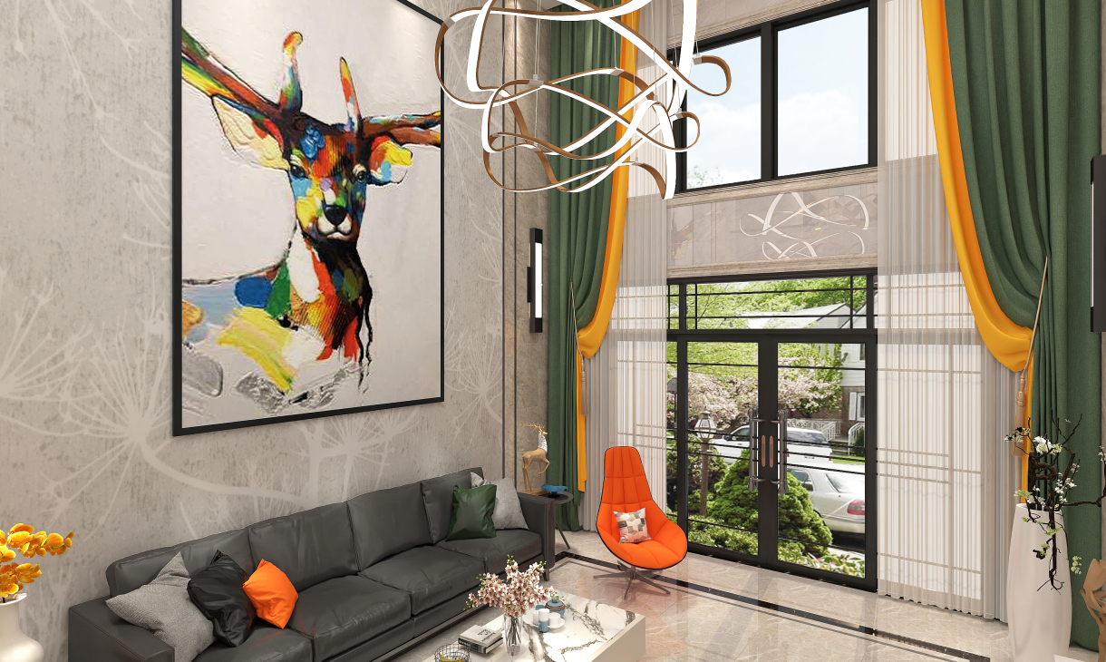 客廳主色調(diào)的選擇上都偏向于清雅,使用白、灰、淺駝、奶咖等中性色調(diào)為主,其簡練純粹的氣質(zhì),營造出純凈而不失溫馨的空間格調(diào)。在優(yōu)雅純凈的主色調(diào)之中,再加入少許的亮色輔之,如墨綠、大紅、深藍(lán)、亮黃等,雖只是小范圍的運(yùn)用,卻能頓時(shí)成為整個(gè)空間的視覺中心,以點(diǎn)帶面的的帶動起整個(gè)空間氣氛,渲染出時(shí)尚與活力的氣息。
