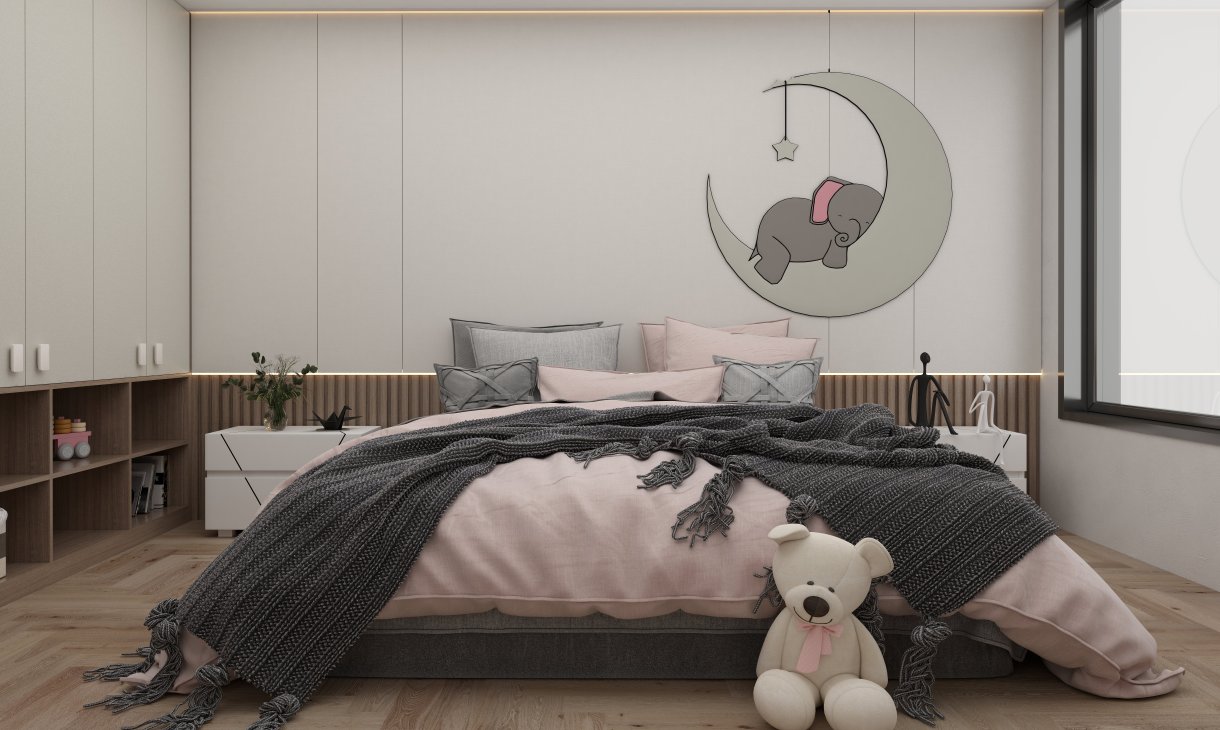 效果圖:全屋概覽效果圖、客廳效果圖、餐廳效果圖、廚房效果圖、兒童房效果圖、主臥效果圖