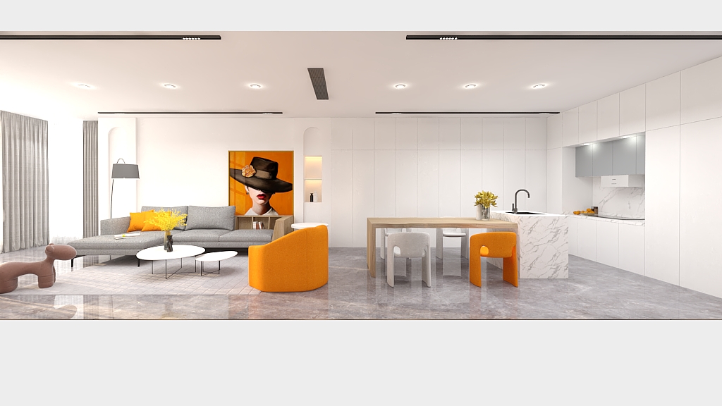 每個空間至少2張效果圖+1張全案全景圖展示,方案描述完整,所有空間需命名。