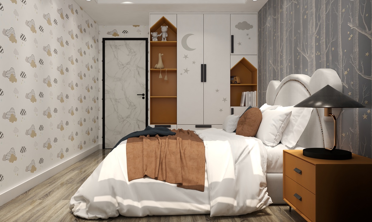效果圖:全屋概覽效果圖、客廳效果圖、餐廳效果圖、廚房效果圖、兒童房效果圖、主臥效果圖