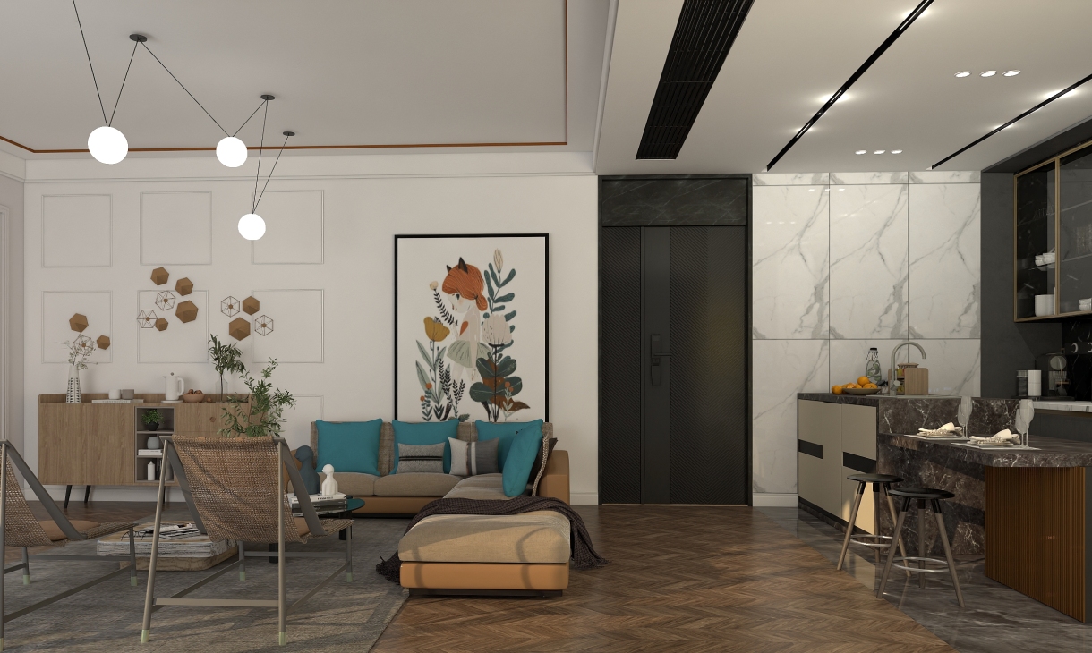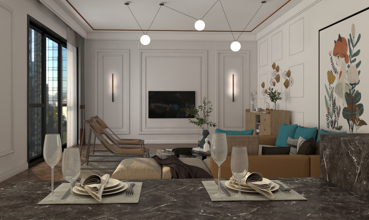 每個空間至少2張效果圖+1張全案全景圖展示,方案描述完整,所有空間需命名。