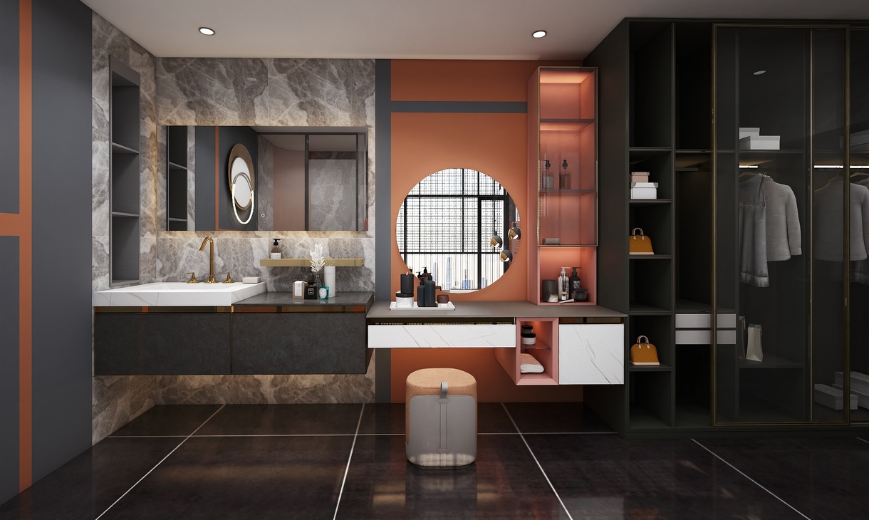 大空間,衣帽間合集,梳妝臺加浴室柜的完美結(jié)合