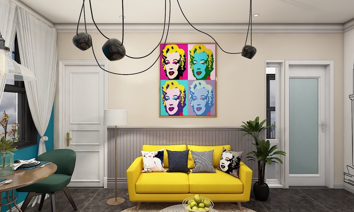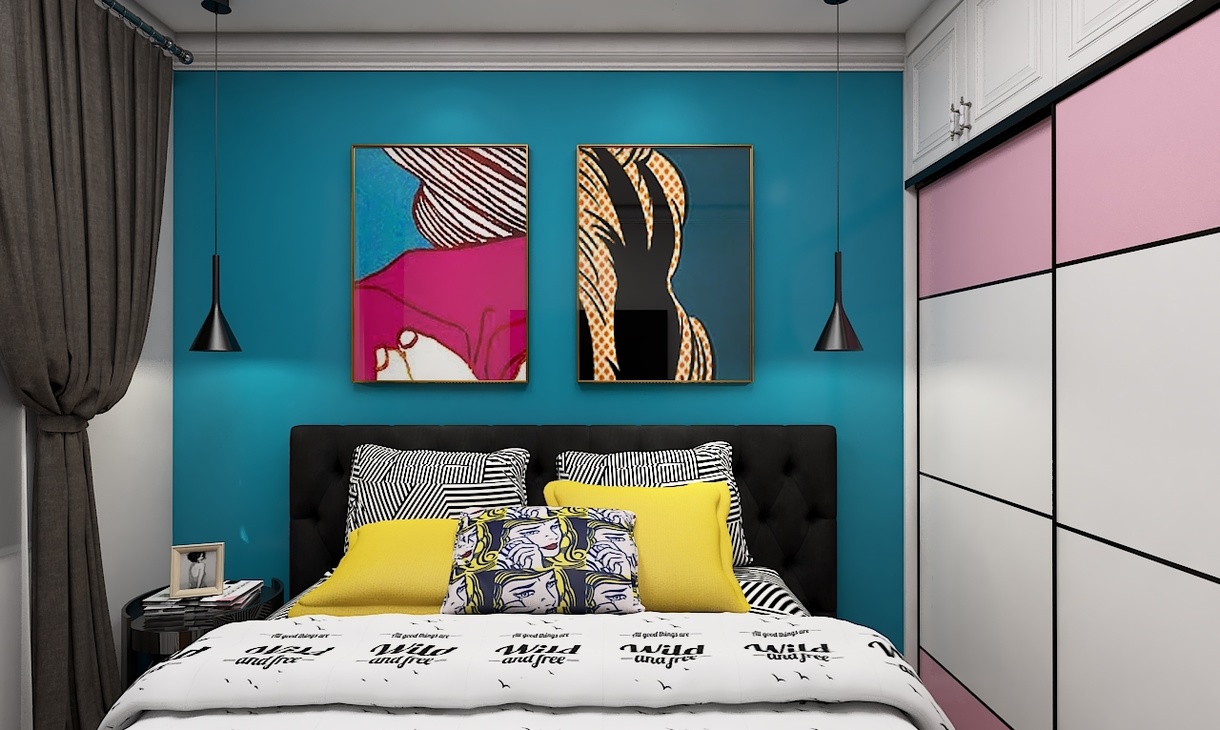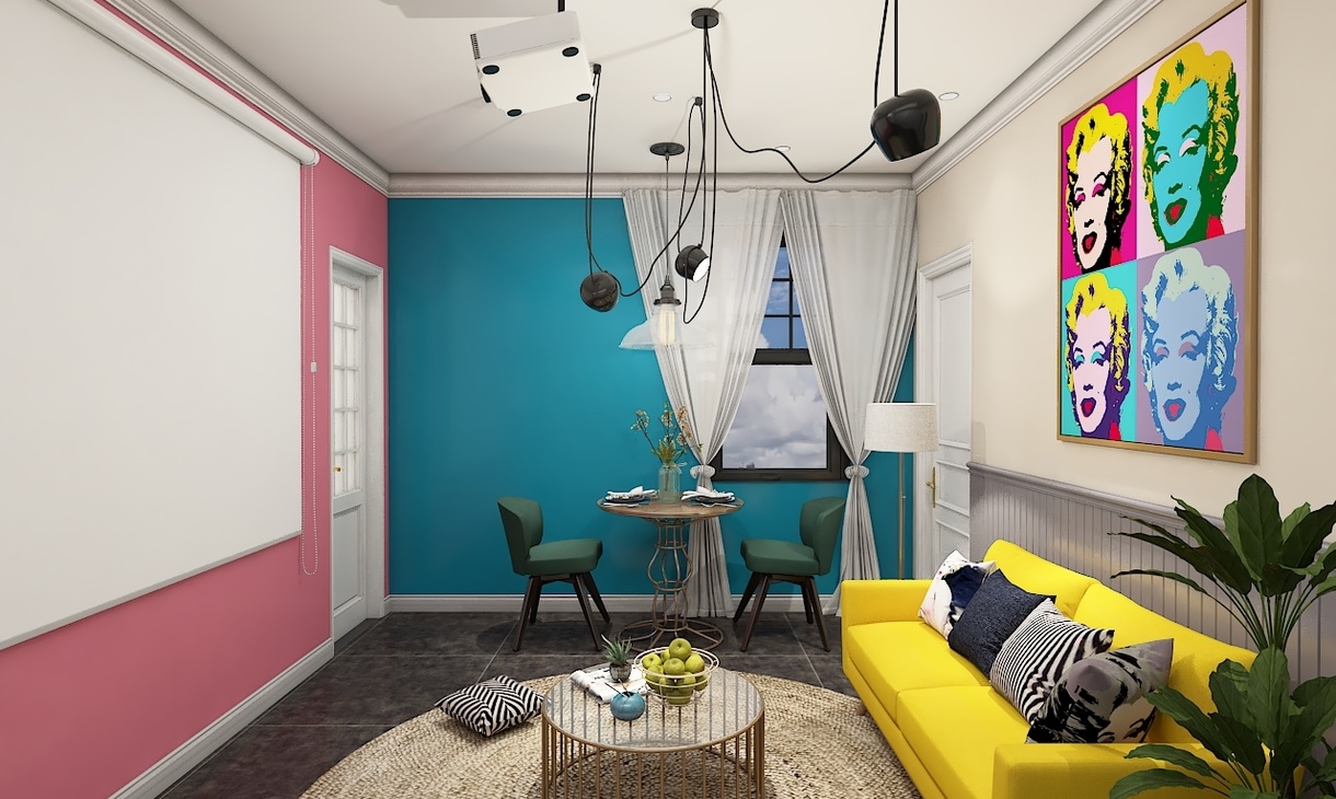 高飽和度的色彩碰撞,經(jīng)典的再造重組,波普風(fēng)格裝飾畫(huà)點(diǎn)亮全屋,讓小小的一居室也有自己的性格特性