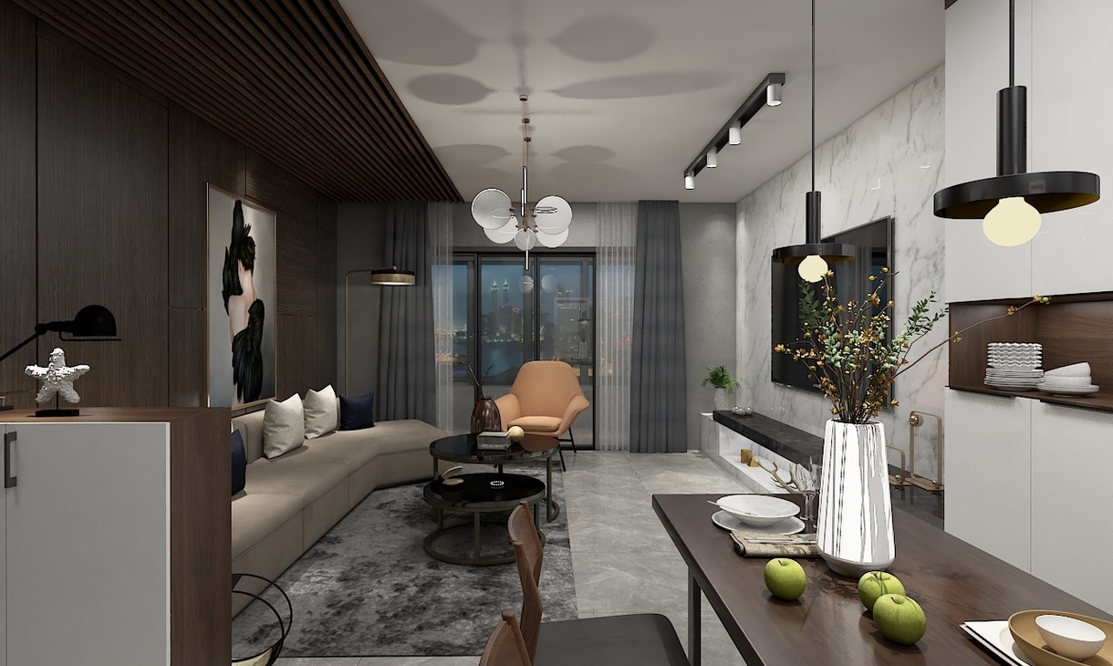 每個空間至少2張效果圖+1張全案全景圖展示,方案描述完整,所有空間需命名。
