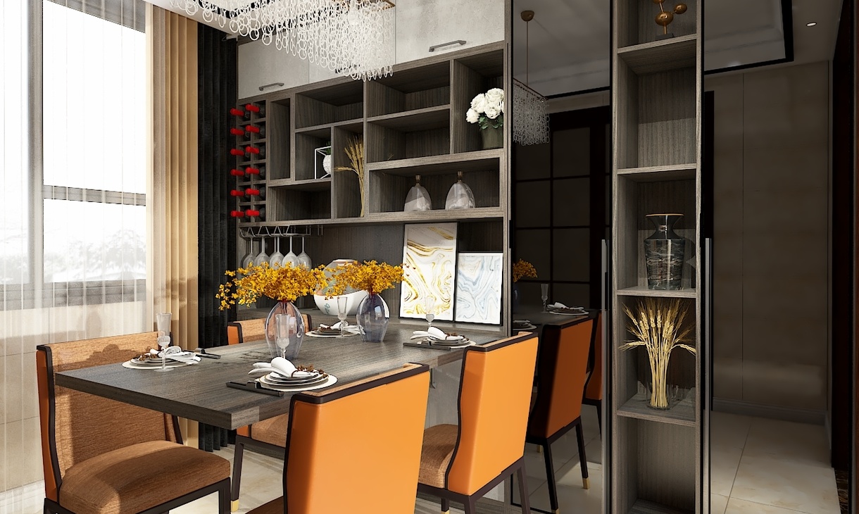 客餐廳整體以中性色調(diào)搭為主與多種顏色搭配組合,大理石桌面等多種材質(zhì)的碰撞,在簡約的線條中,打造出不一樣的變化。