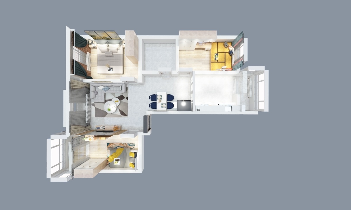 每個空間至少2張效果圖+1張全案全景圖展示,方案描述完整,所有空間需命名。