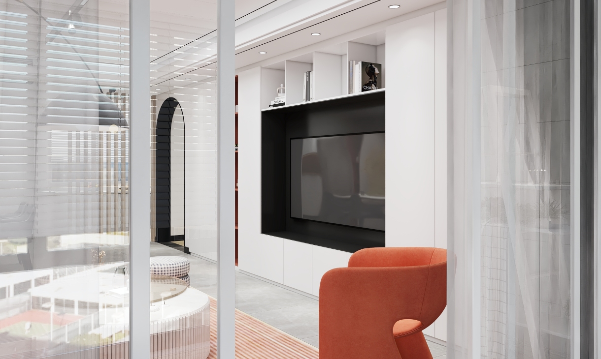 休閑陽臺設(shè)置了一組吧臺,作為主臥需求的延伸,坐在陽臺上,看看風景,一臺電腦,一杯咖啡,可辦公也滿足了休閑