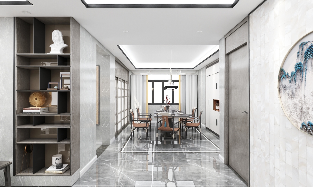 如果把新中式設(shè)計(jì)文化臆想為一幅巨幅的潑墨山水,那么這幅山水畫(huà)最為出彩、最為精髓之處莫過(guò)于空間的留白之美。