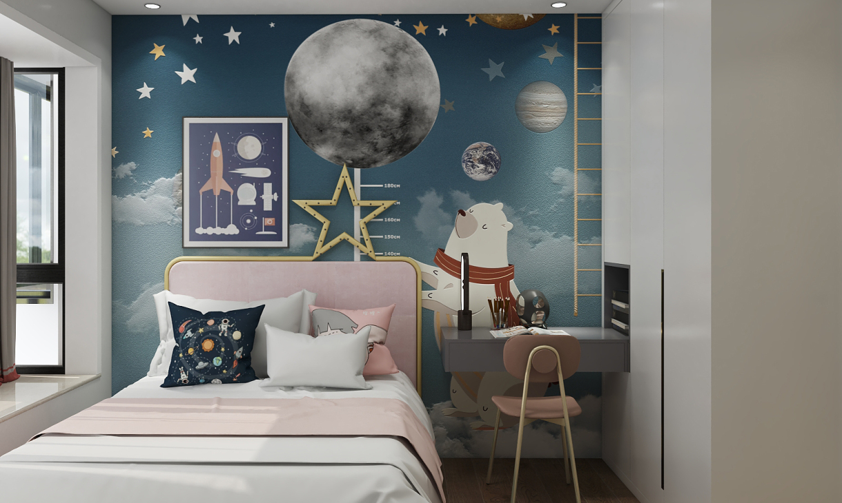 效果圖:全屋概覽效果圖、客廳效果圖、餐廳效果圖、廚房效果圖、兒童房效果圖、主臥效果圖