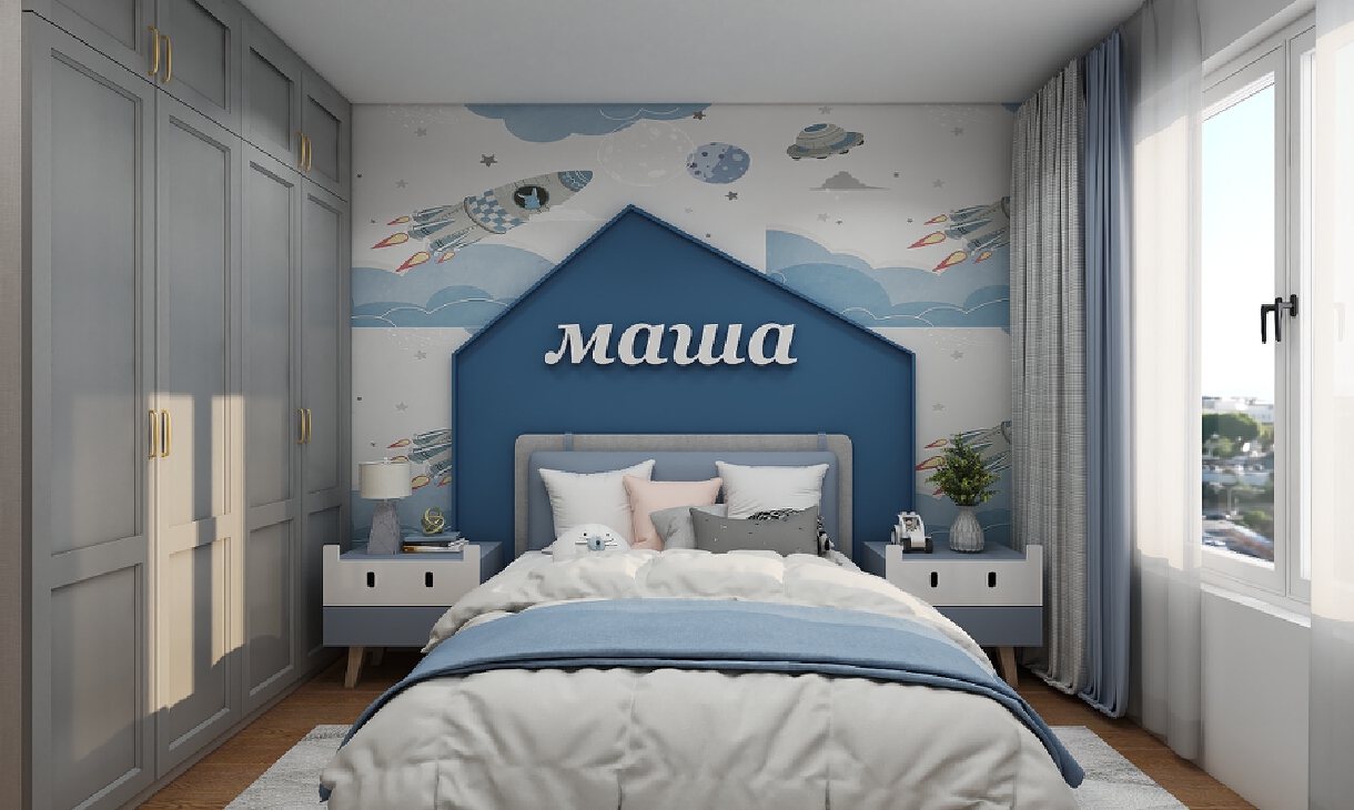 效果圖:全屋概覽效果圖、客廳效果圖、餐廳效果圖、廚房效果圖、兒童房效果圖、主臥效果圖