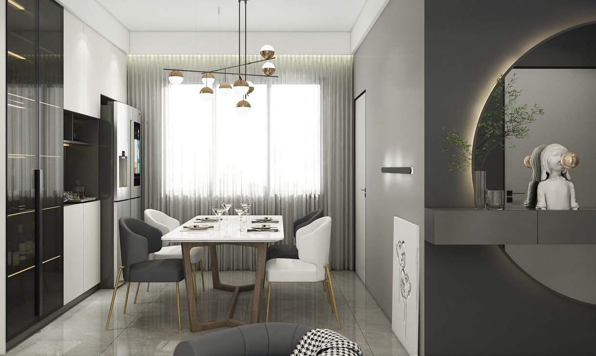 每個(gè)空間至少2張效果圖+1張全案全景圖展示,方案描述完整,所有空間需命名。