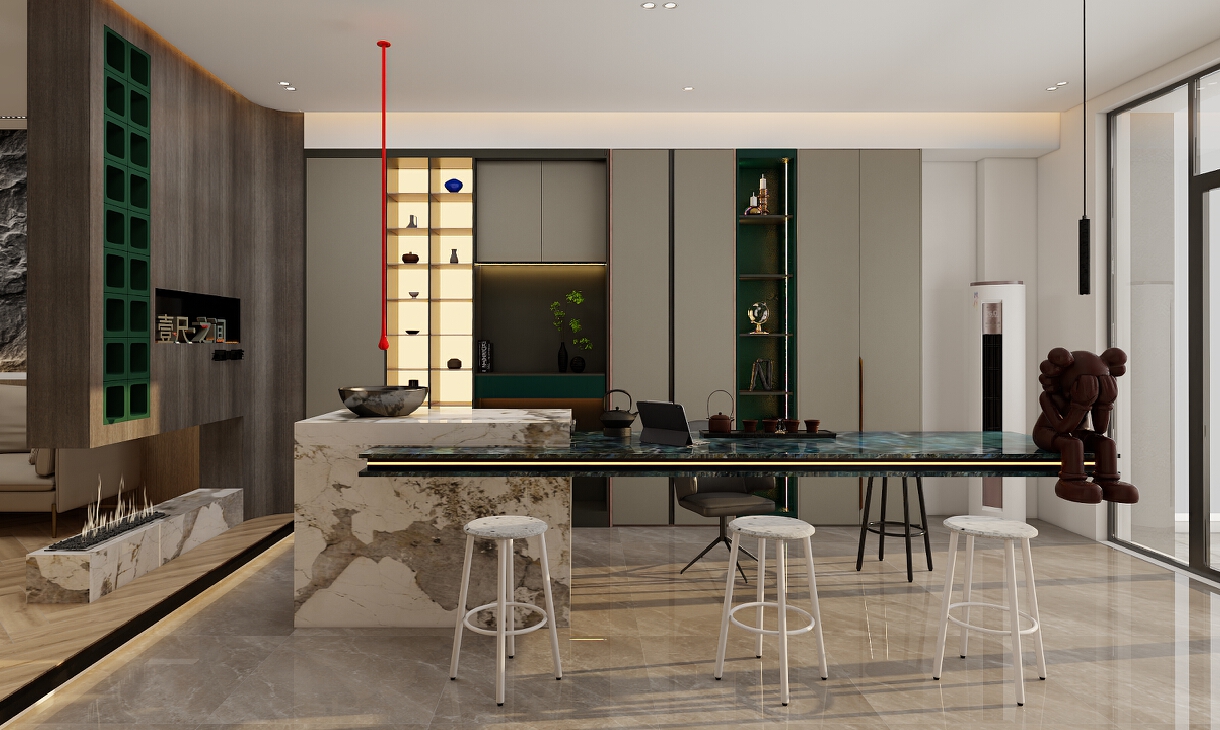 這是一個全屋定制木作工作室的案子,總共50m2的面積,展現(xiàn)出設(shè)計和樣品展示的功能,設(shè)計區(qū)域由巖板包裹的水吧臺,延伸出來的懸浮挑空書桌,是本案子的一大特色,懸空背景墻加上水泥構(gòu)件的點綴,讓空間更加具有延展性......