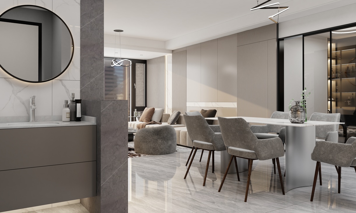 每個空間至少2張效果圖+1張全案全景圖展示,方案描述完整,所有空間需命名。