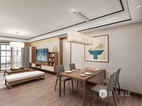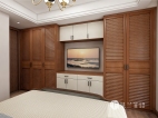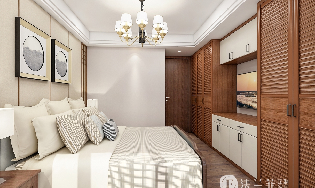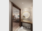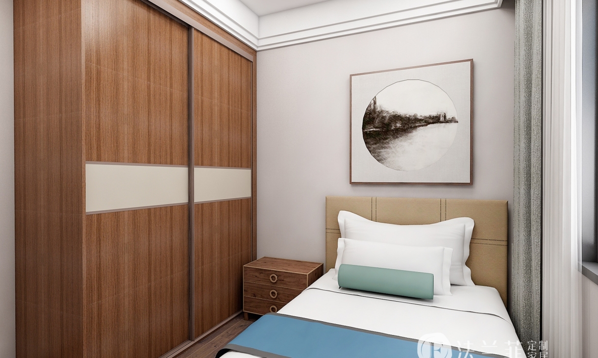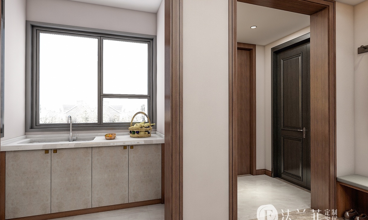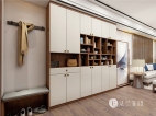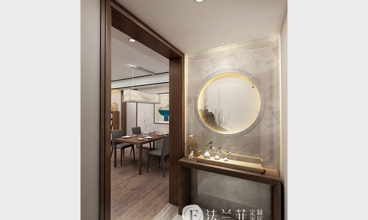 入戶(hù)做了一個(gè)非常有禪意的背景墻,使空間可以有儀式感,同時(shí)把入戶(hù)柜內(nèi)移,保證了較為充裕的空間放置入戶(hù)物品。同時(shí)主臥衣帽間墻體的改的使得次臥1有一個(gè)相對(duì)規(guī)整的空間。