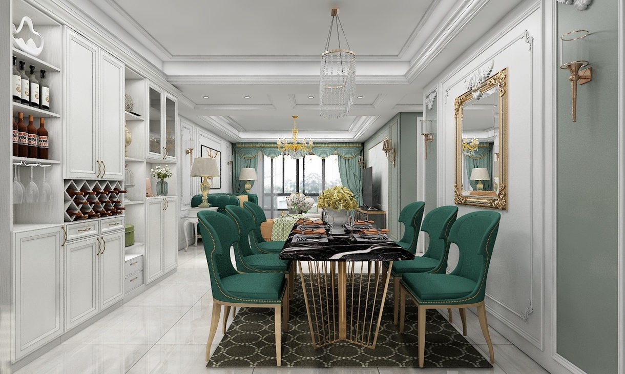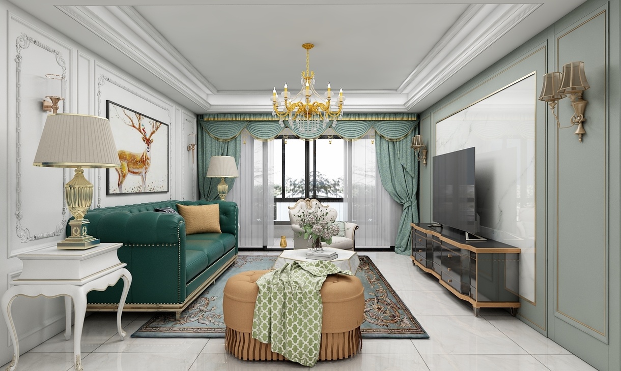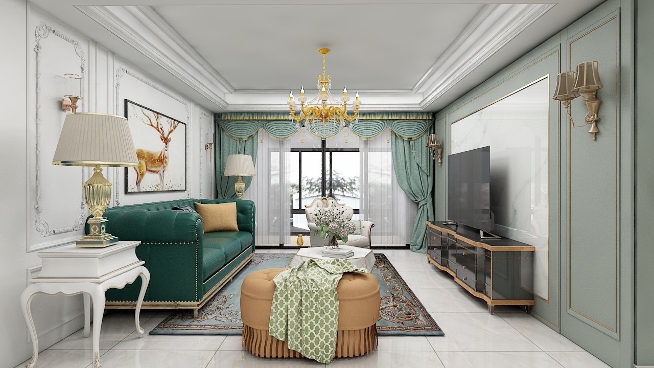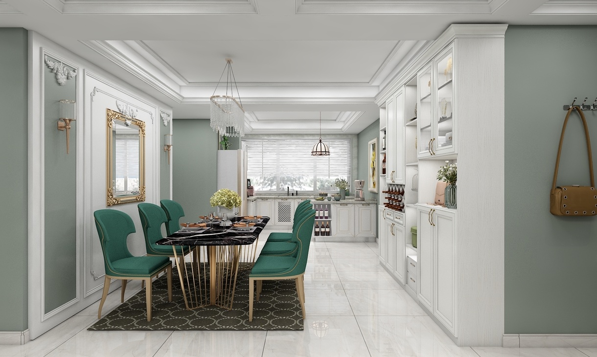 客廳是家居空間的門面,更是一個家的門面,體現(xiàn)著主人的品味。玻璃金屬水晶吊燈搭配輕奢風格的高腳杯,給空間一種典雅古典的氣息。