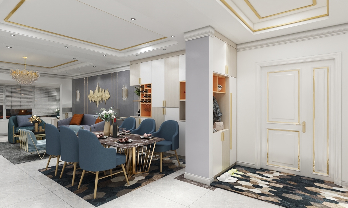 每個空間至少2張效果圖+1張全案全景圖展示,方案描述完整,所有空間需命名。