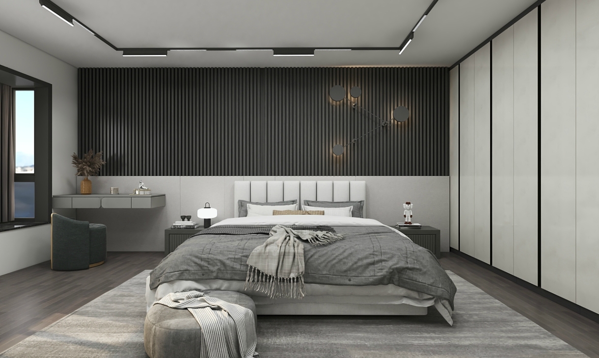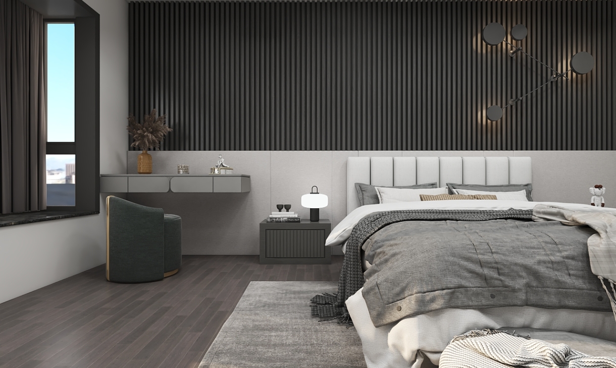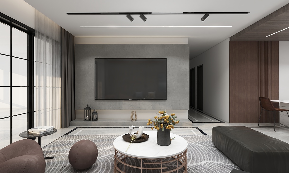 細(xì)膩的家具材質(zhì),簡(jiǎn)潔的黑白灰設(shè)色,搭配富有質(zhì)感的文玩藝術(shù)品,在細(xì)節(jié)處勾勒精致的生活意趣。