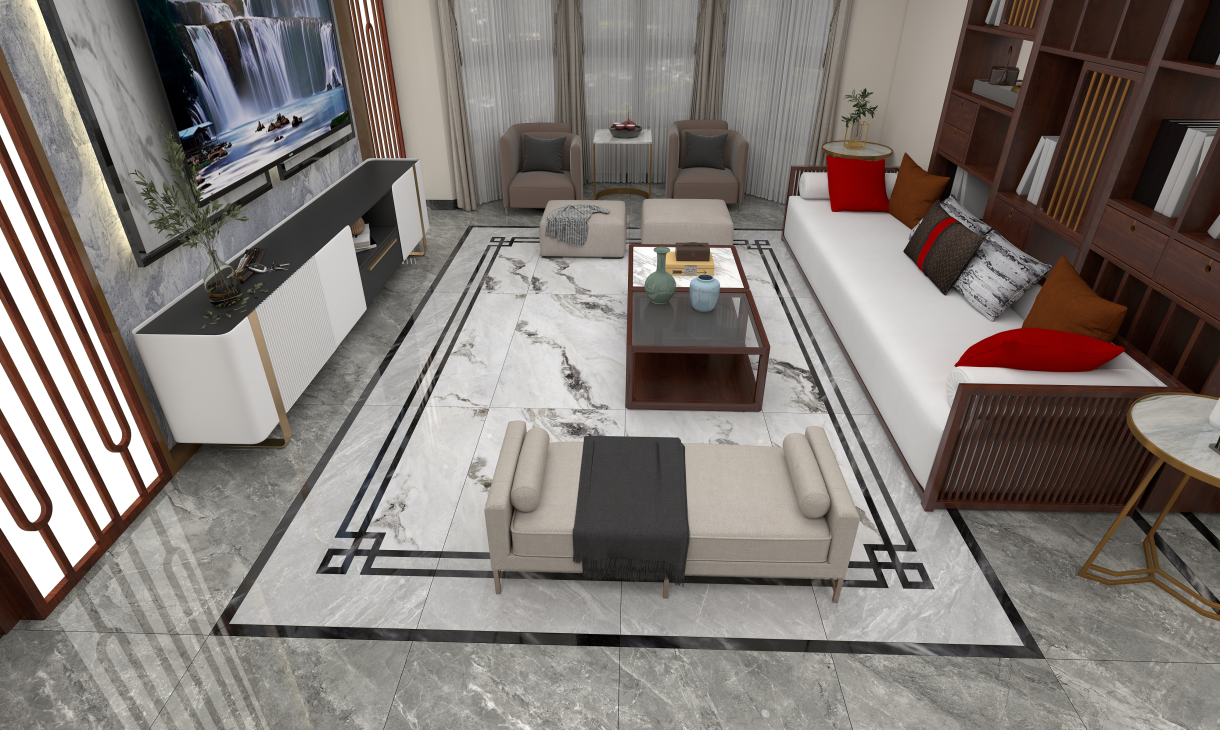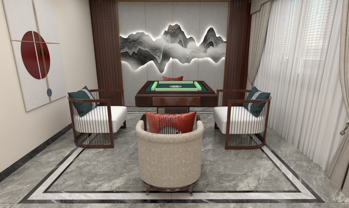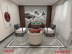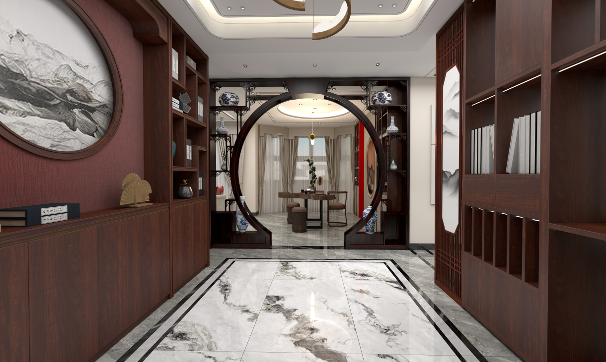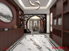 客戶要求大氣,又要有個性。 新中式就比較有個性了,軟裝布藝中國紅,鈦金條古銅金,地面瓷磚水刀中國結比較有代表。