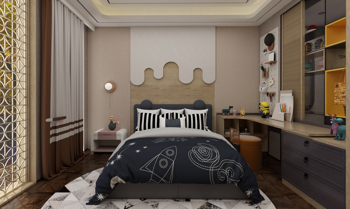 效果圖:全屋概覽效果圖、客廳效果圖、餐廳效果圖、廚房效果圖、兒童房效果圖、主臥效果圖