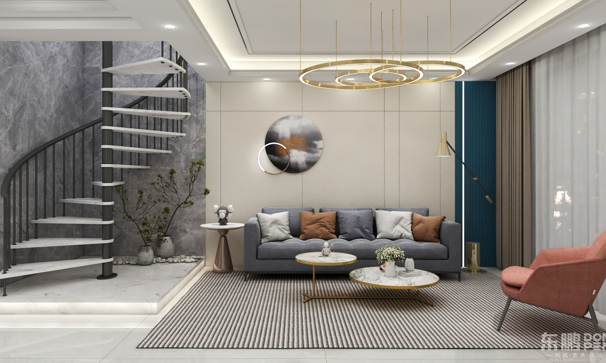 流暢利落的線型分割體塊,融合收納設(shè)計(jì),視覺傳達(dá)有輕緩、有重點(diǎn),更和諧;天然寫意的潑墨紋路銀狐理石,呈現(xiàn)一個(gè)自然、雅致、放松的居家空間,整體空間奢華而不俗,優(yōu)雅而不陋。
