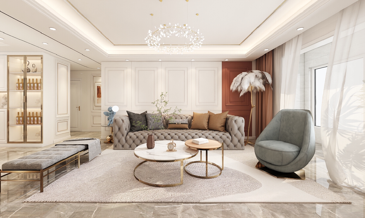 色彩鮮明,層次感強(qiáng)烈 色彩是定位風(fēng)格的重要因素,想要打造出輕奢的感覺(jué),必然要經(jīng)過(guò)巧妙的色彩搭配,才能顯現(xiàn)出豐富的魅力。 在色彩選擇上,輕奢風(fēng)格一般會(huì)選用帶有高級(jí)感的中性色,諸如駝色、象牙白、奶咖、黑色及碳灰色,來(lái)演繹一種“低調(diào)的奢華”,令空間質(zhì)感更為飽滿。黑色、碳灰色等深色調(diào),則需要在反光材質(zhì)上,如玻璃、絲絨、鏡面等元素中,將華麗的格調(diào)最大化彰顯。