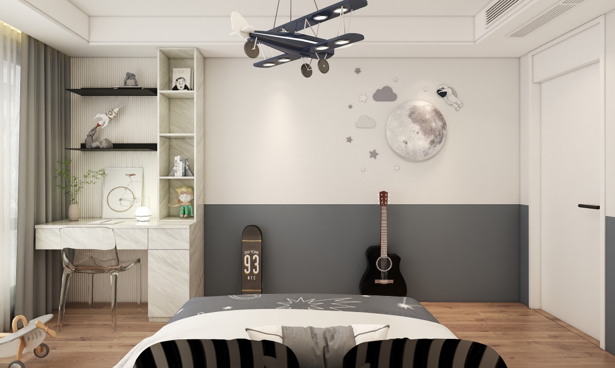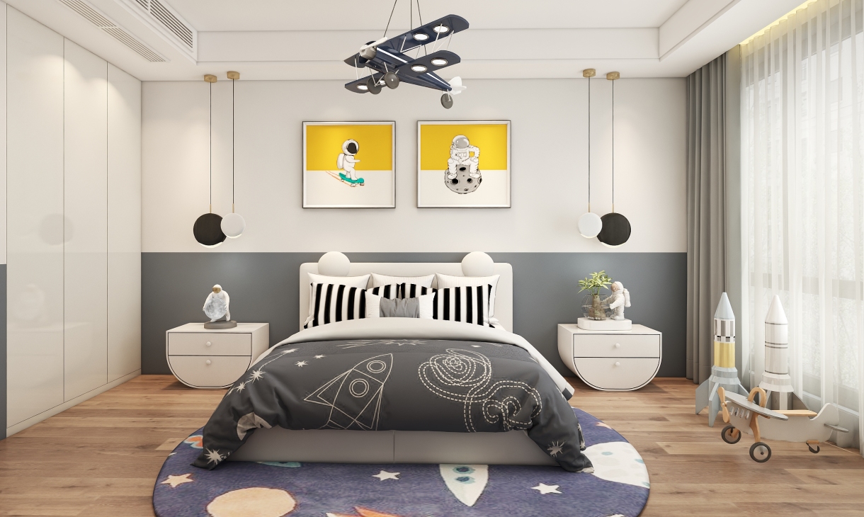 效果圖:全屋概覽效果圖、客廳效果圖、餐廳效果圖、廚房效果圖、兒童房效果圖、主臥效果圖