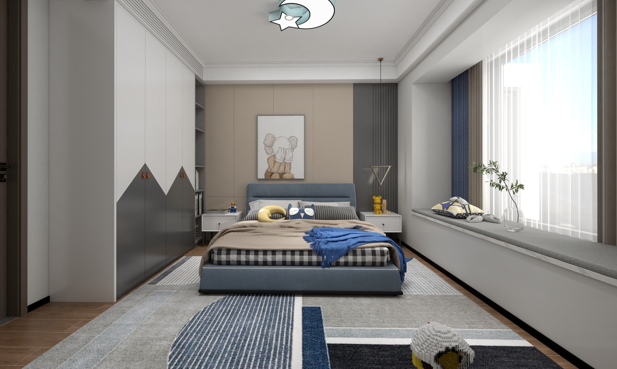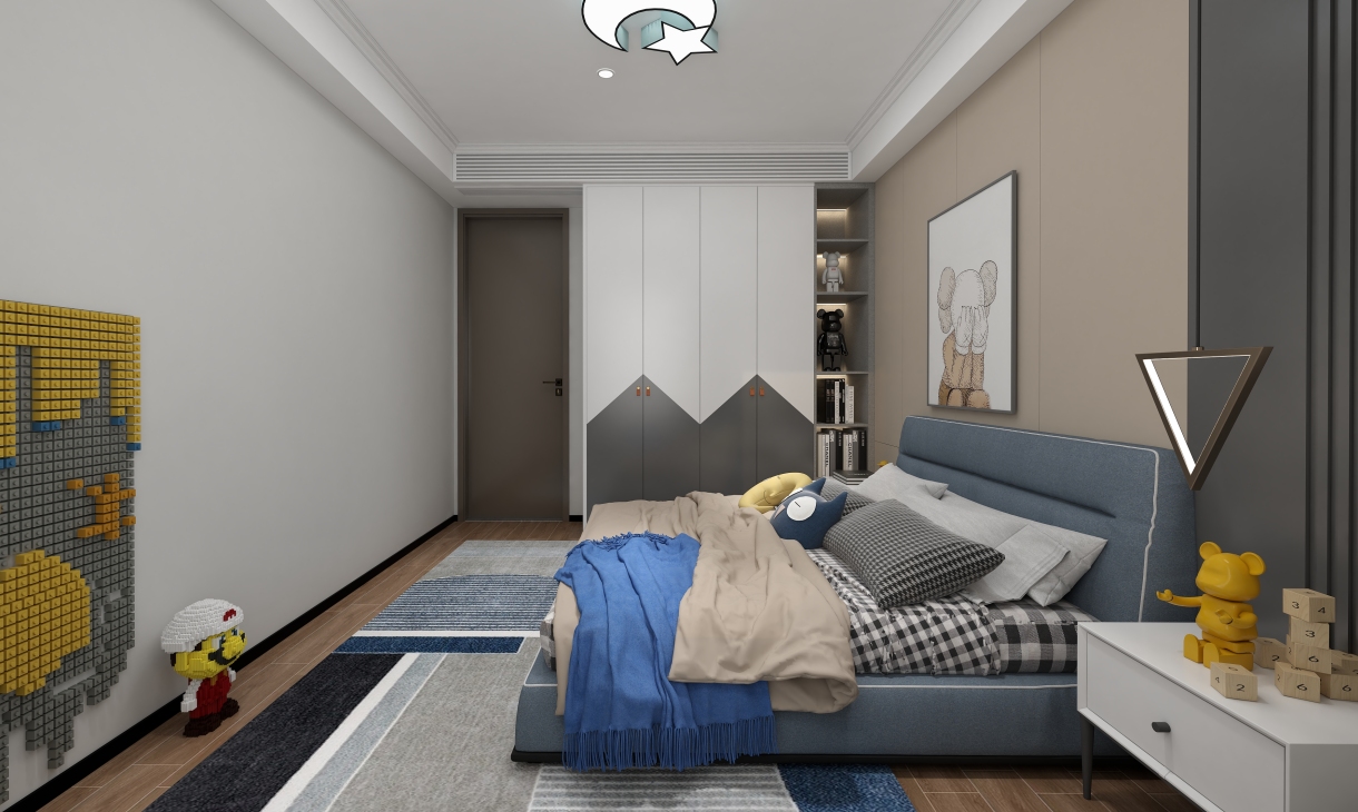 效果圖:全屋概覽效果圖、客廳效果圖、餐廳效果圖、廚房效果圖、兒童房效果圖、主臥效果圖