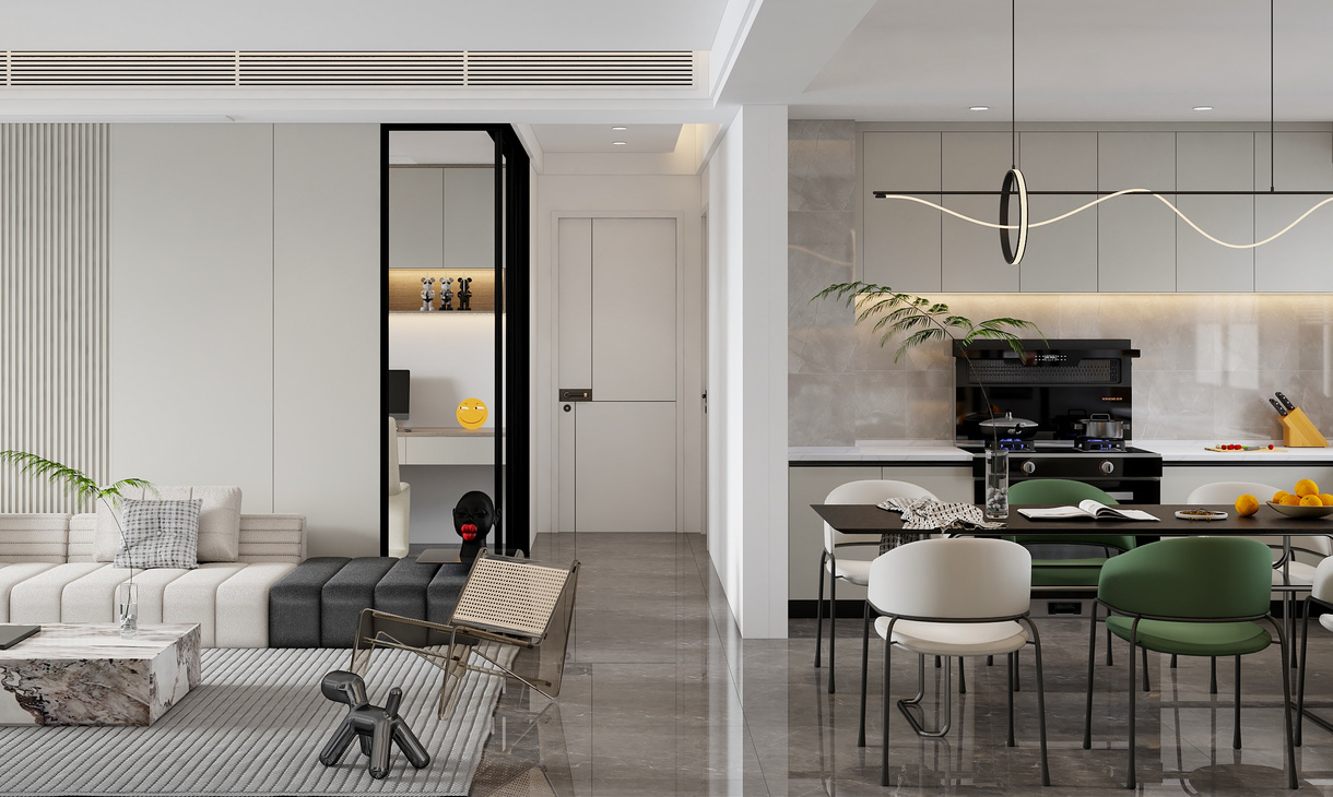 效果圖:全屋概覽效果圖、客廳效果圖、餐廳效果圖、廚房效果圖、兒童房效果圖、主臥效果圖