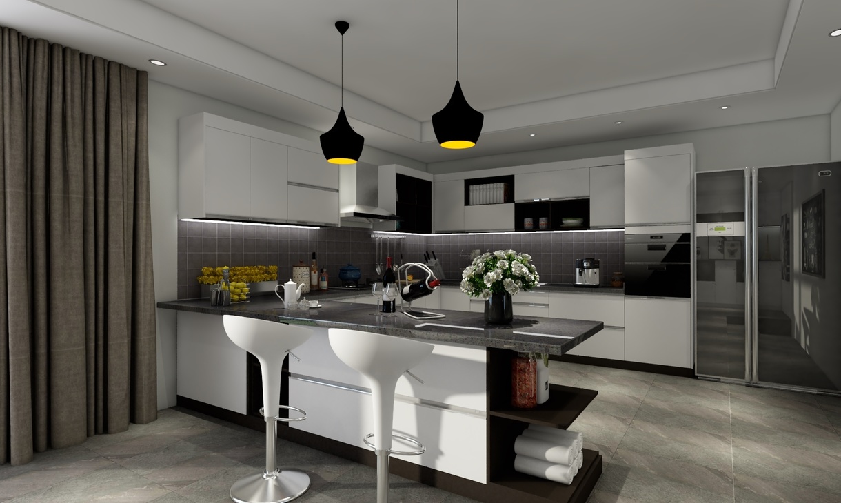 餐廳與廚房是開放式的布局這樣可以很好的避免壓抑性,再加上一個大的落地窗讓陽光穿透玻璃照射室內(nèi),讓屋主每天都充滿活力與美好