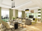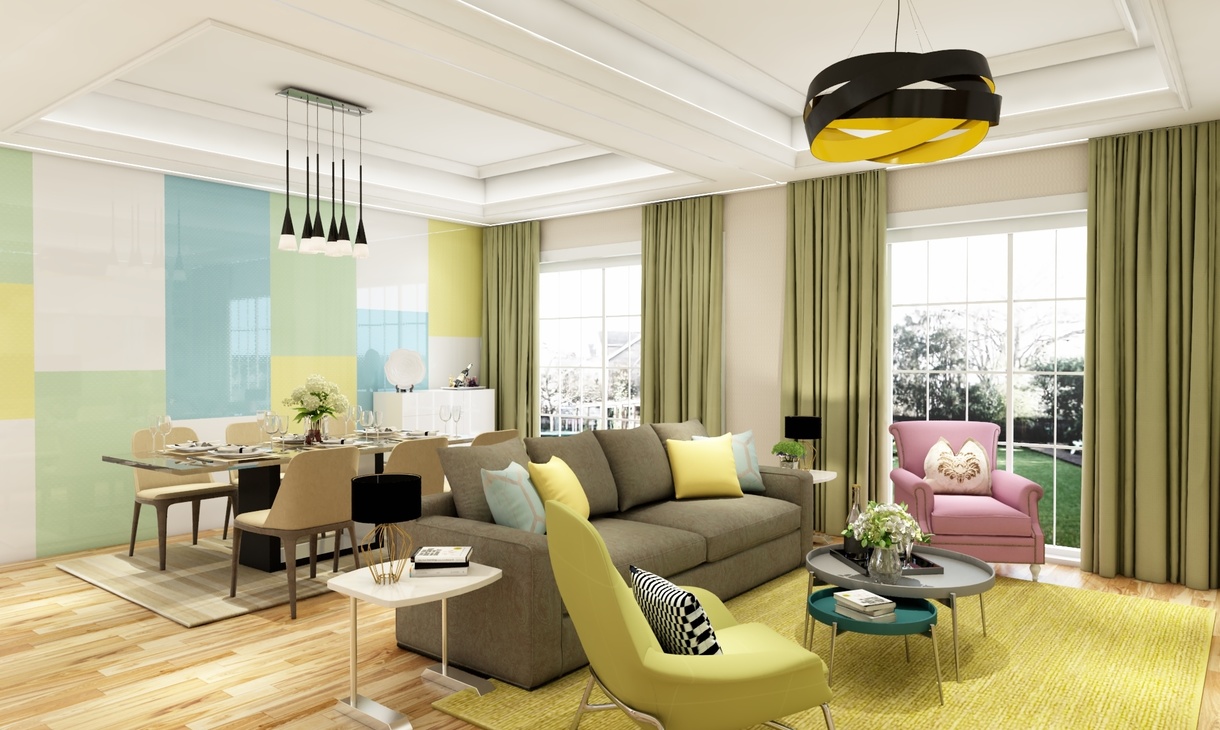 客廳是提供情感交流的場(chǎng)所,所以空間很通風(fēng)、采光皆佳的居住空間,草綠色的點(diǎn)綴給人明亮、健康的感受,無(wú)形之中讓住在里面的人都變的開(kāi)朗起來(lái),采用落地窗的設(shè)計(jì),將為家里的空間帶來(lái)更好、更自然的舒適感。