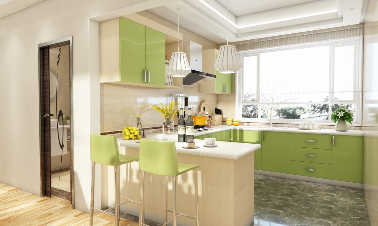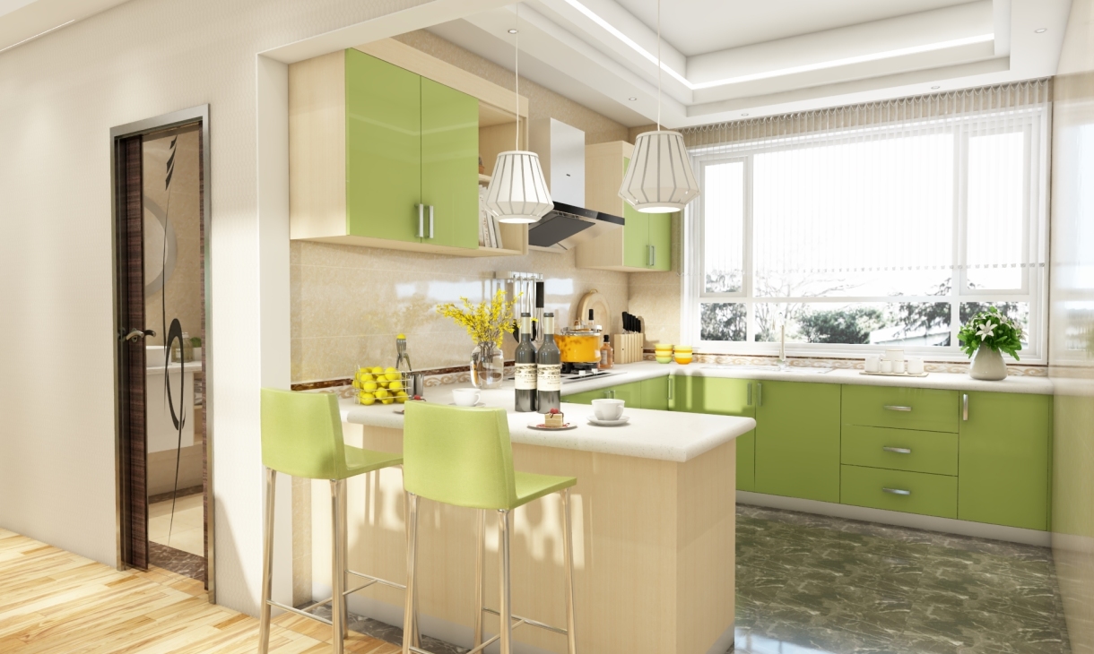 廚房裝修從整體上看就顯得十分的大方。整個(gè)廚房的裝修在顏色上以淡綠色為主,沒(méi)有華美的裝飾裝點(diǎn),實(shí)木的整體櫥柜設(shè)計(jì),流利的線條,大理石的臺(tái)面整體顯得十分的簡(jiǎn)單素雅。