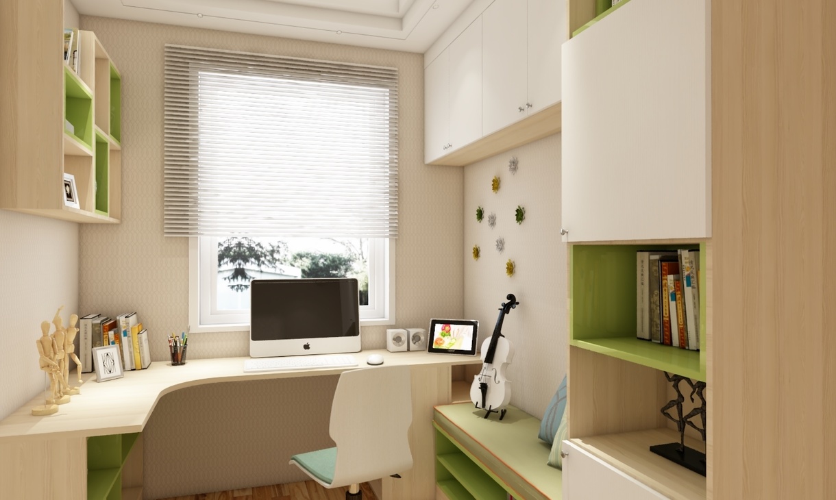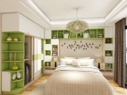 兒童房是一個(gè)顏色活躍的區(qū)域應(yīng)用了草綠+藍(lán),配色向往著清新、童真、活躍,有活力,充分的發(fā)揮兒童的構(gòu)思。