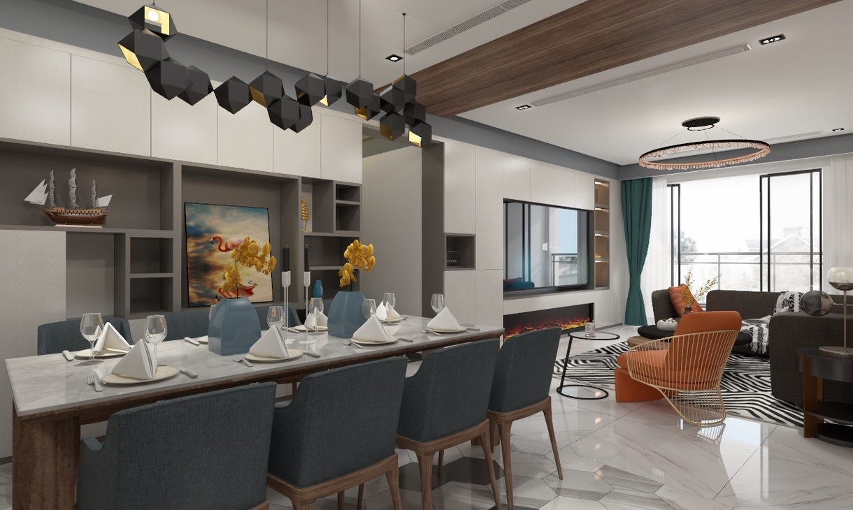 每個(gè)空間至少2張效果圖+1張全案全景圖展示,方案描述完整,所有空間需命名。