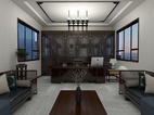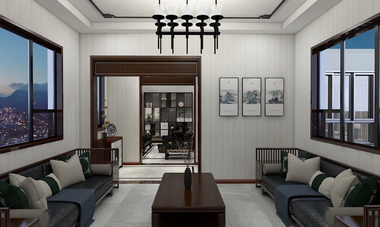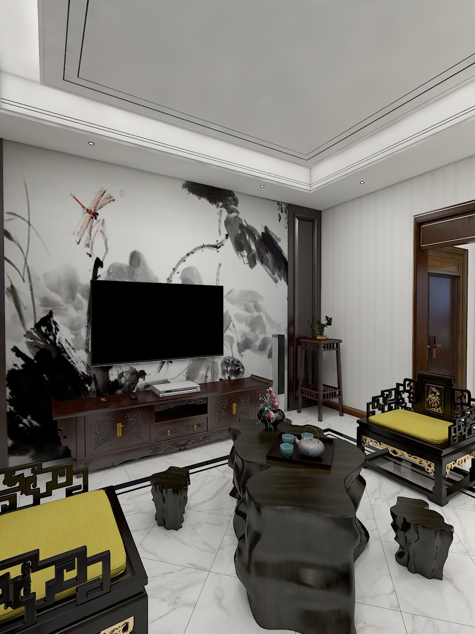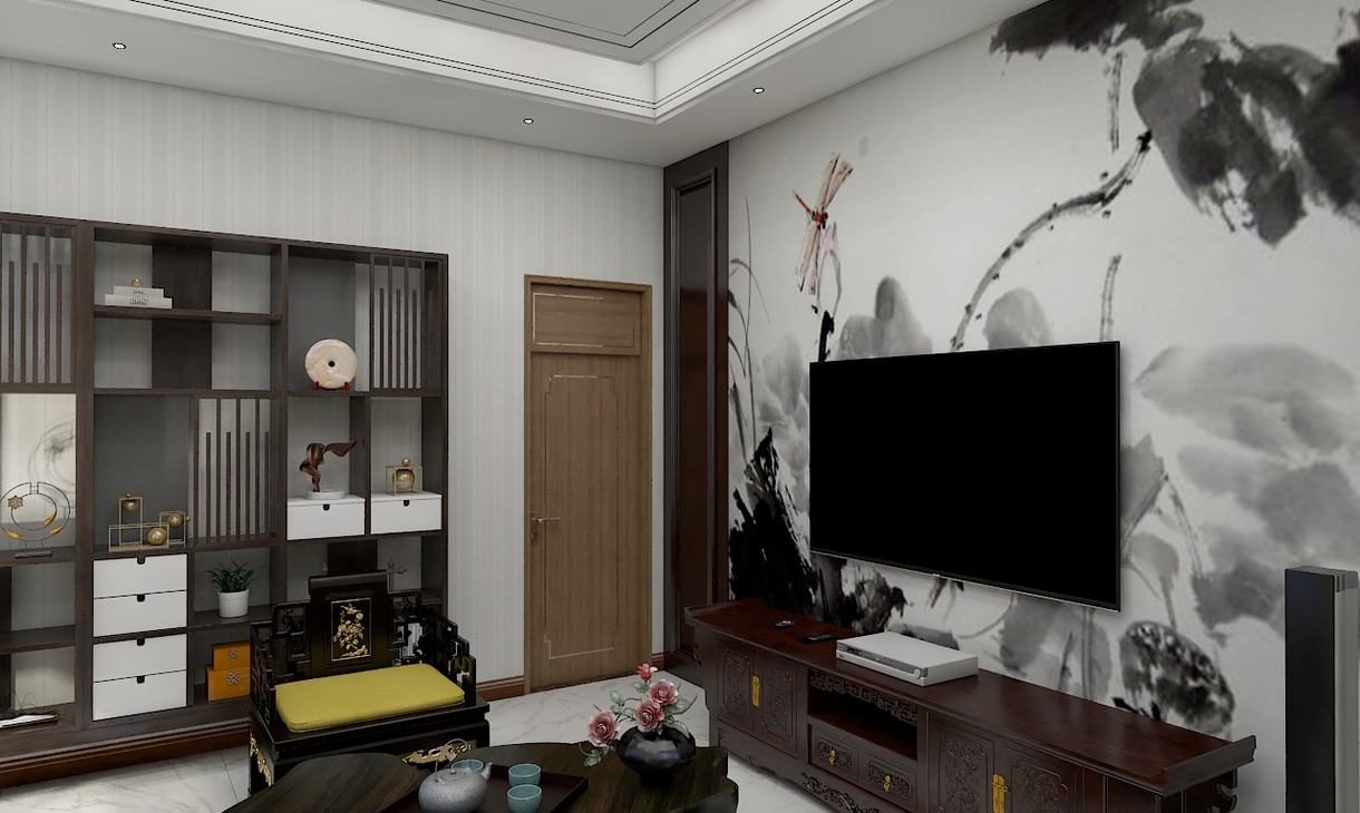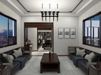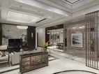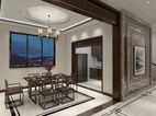 客廳去掉了復(fù)雜的中式風(fēng)格裝修背景墻,采用明亮大氣石材和水墨畫結(jié)合的形式。增加了空間的明亮度,給人一種清新大氣的感覺(jué)。深色復(fù)雜的波打線拼花與簡(jiǎn)潔的背景墻和天花形成激烈的碰撞,讓中式風(fēng)格裝修的空間不再單調(diào)反而充滿了趣味性,形成了簡(jiǎn)約與復(fù)雜,現(xiàn)代與傳統(tǒng)的完美結(jié)合。