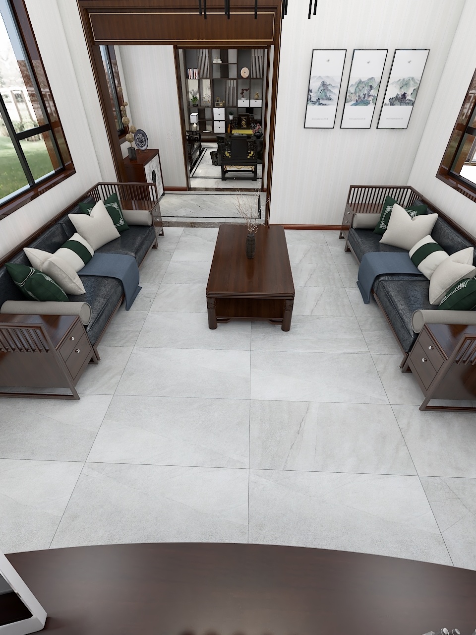 書房兼會(huì)客廳,地面采用砂巖系列600x1200mm大板錯(cuò)縫鋪貼,更顯靜謐之感,在此處可以使浮躁的內(nèi)心感受到愜意的美好。