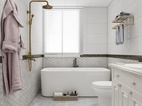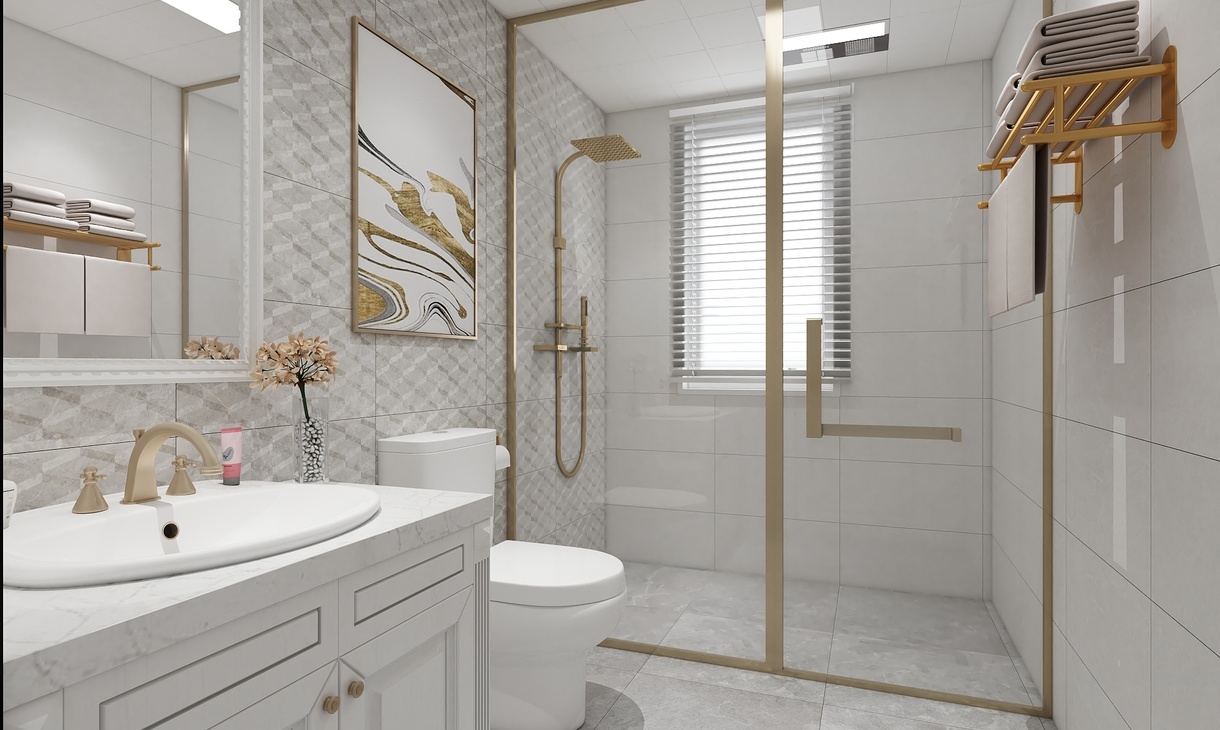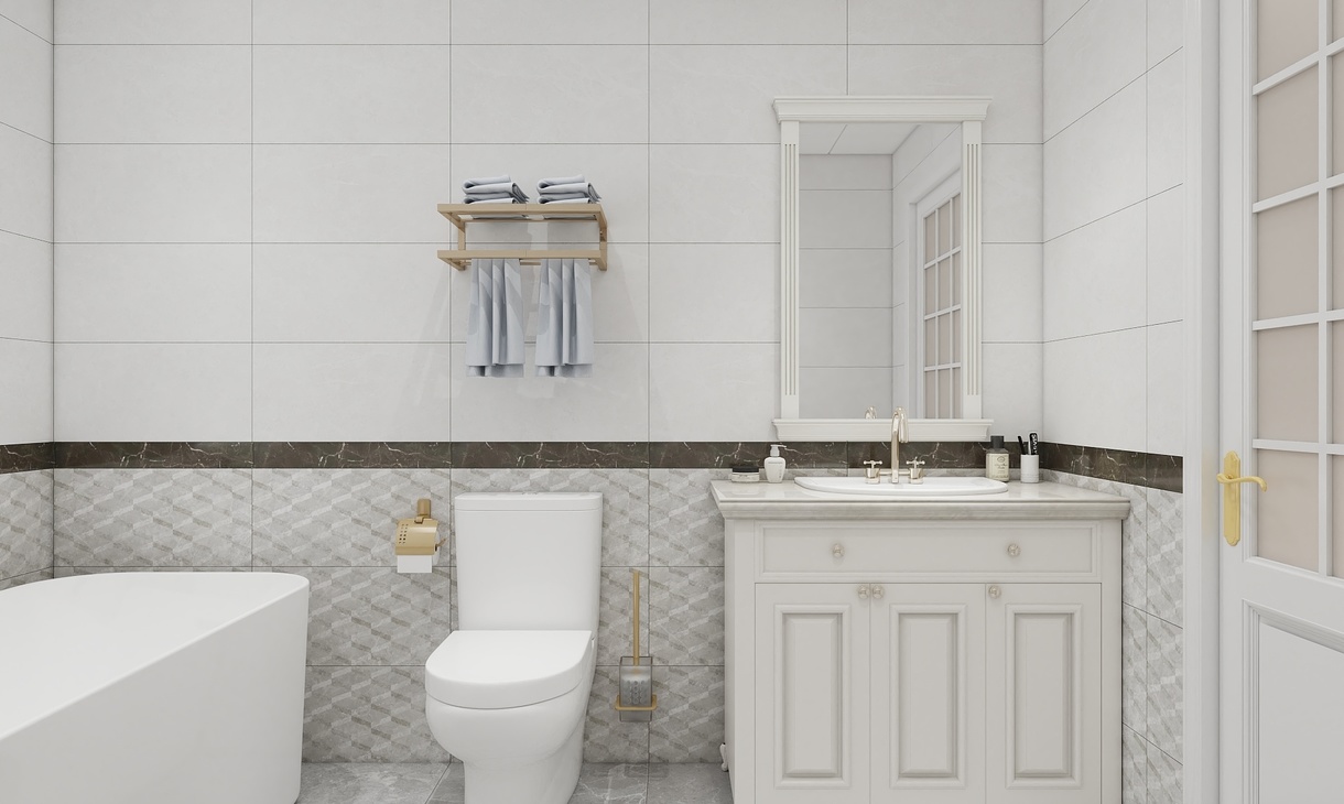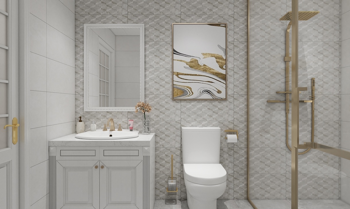 衛(wèi)生間墻地磚采用多款瓷磚的拼接,使空間不再單調(diào)。