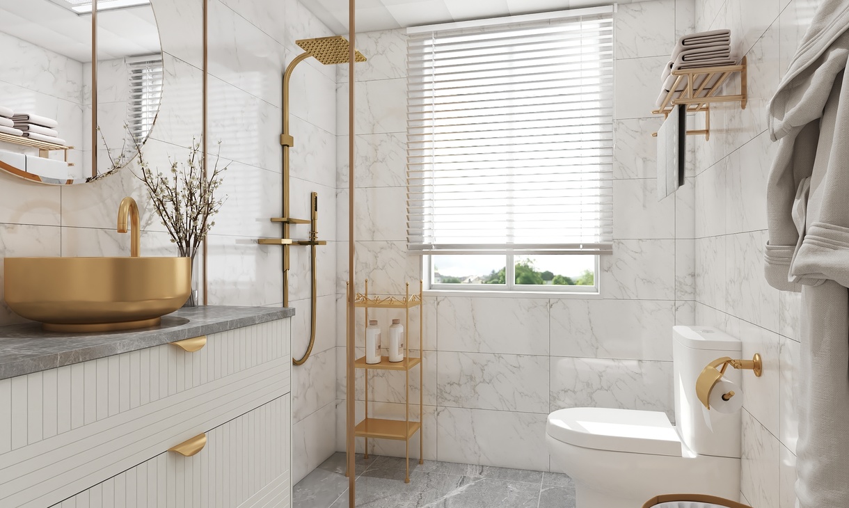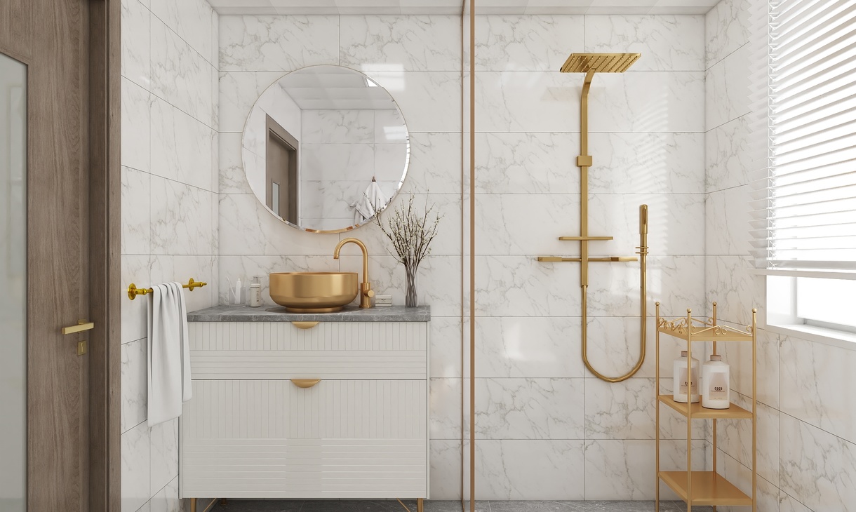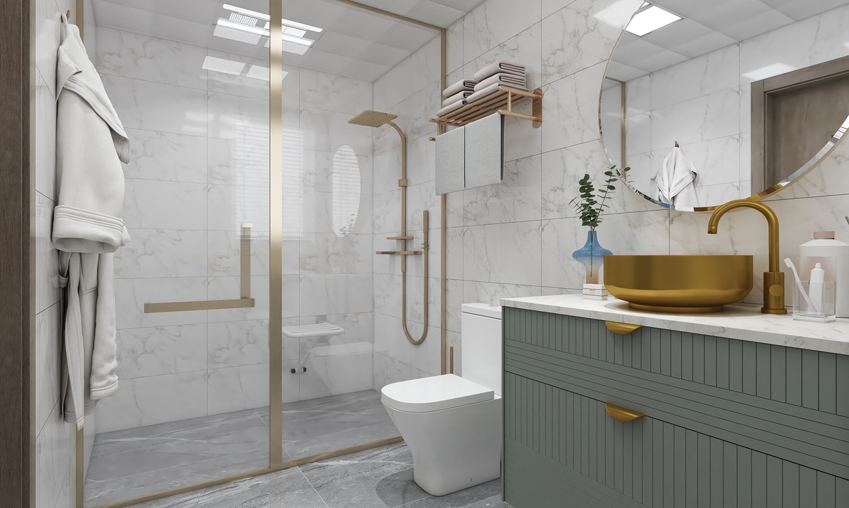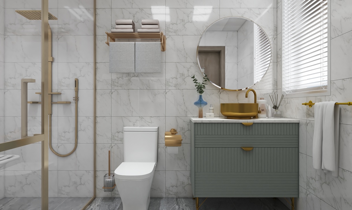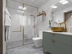 衛(wèi)生間同樣搭配著綠色的洗手臺,在金色的修飾下,顯得格外的優(yōu)雅。